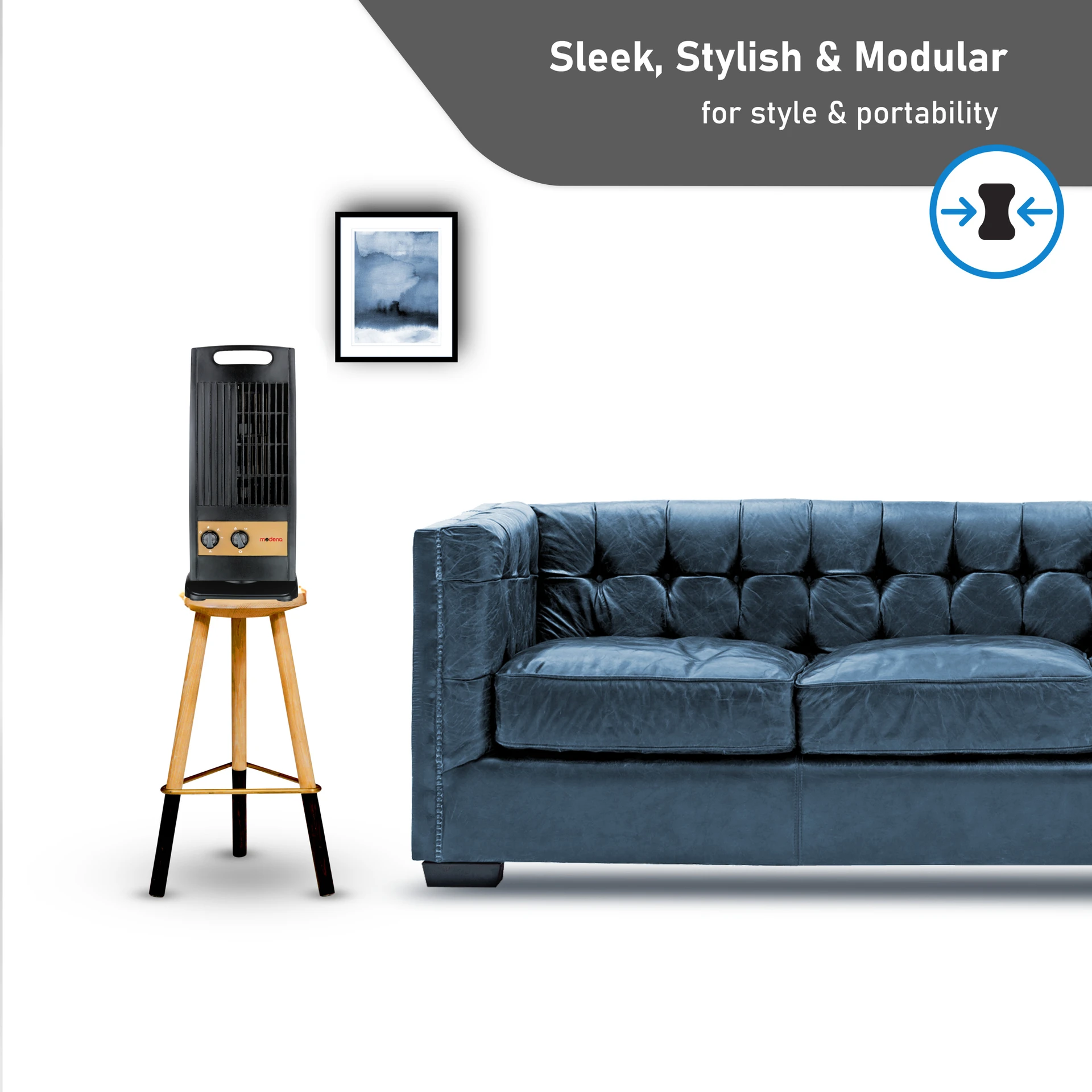 The slim vertical tower design is ideal for modern homes where space matters. It fits effortlessly on desks, countertops, or corners without cluttering your area. Its premium matte black finish adds a touch of elegance, making it not just an appliance, but a part of your décor.